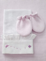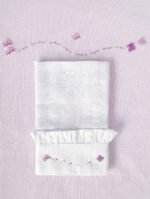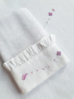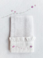 - Fralda de boca: usada para limpar a boquinha do bebê na hora das mamadas. Medidas: 35cm x 33cm