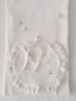 - Fralda de ombro: usada para o bebê regurgitar após as mamadas, e proteger o bebê do contato direto com a roupa de quem o está segurando. Medidas: 70cm x 33 cm